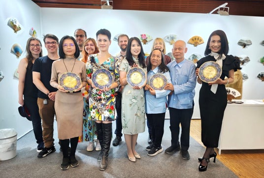 嵩嶋画廊は現在、ART SHOPPING 2025でアジアのアーティストによる作品を展示しています。これらの作品は、日本の京扇子工芸と中華伝統芸術を融合させたもので、来場者から高い評価を受けています。