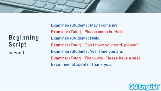 3. Practice Conversation :本番試験同様に、試験会場入室後に想定される面接官との会話を練習します。