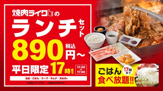 平日11:00~17:00限定で、お得な焼肉セットを890円(税込)からご用意。