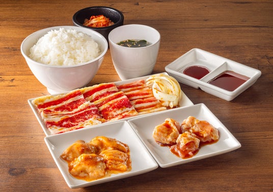 (牛バラカルビ/豚カルビ/牛ホルモン/鶏もも/ごはん/スープ/キムチ)