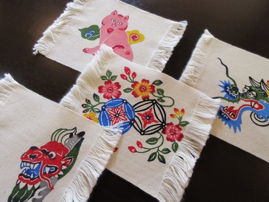 4.紅型コースター染付け体験毎回大人気の沖縄の伝統工芸「紅型染め」を体験しよう!「加治工紅型」加治工摂さんが講師です。