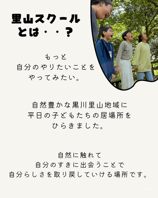 自然とふれあいながら、自分の“すき”を見つけ、自分らしさを取り戻していくことを大切にしています。