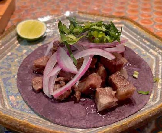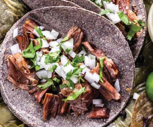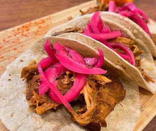 その伝統的な味が詰まったコチニータ・ピビルタコスは、じっくりマリネしたホロホロ柔らかい豚肉や、オレンジの爽やかな酸味とスパイスの香りが特徴。