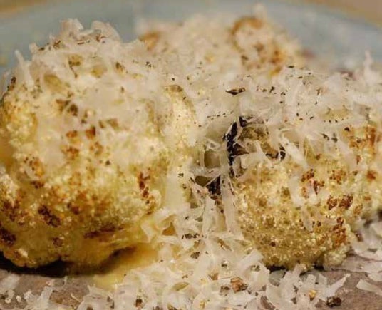 香ばしくグリルしたカリフラワーに、やさしい甘みのとうもろこしペーストがマッチ。