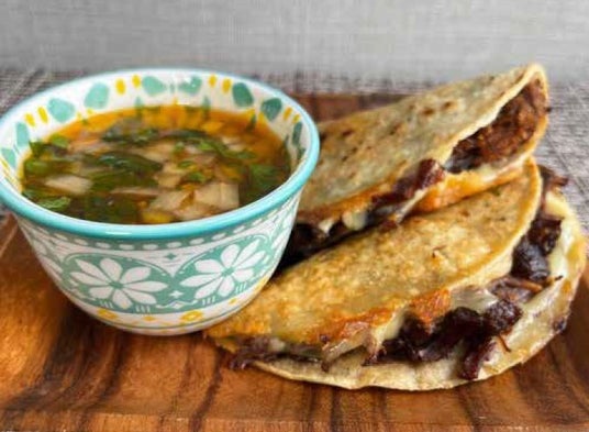 「ラ・カビナ」のシェフが手がけた具材と、「ドンティーヤ」の伝統的なニクスタマル技法で作った100%メキシコ産在来種とうもろこしのトルティーヤ。さらに、乾燥チリをふんだんに使った自家製サルサの組合せは、一度食べたら忘れられない魅力にあふれています。