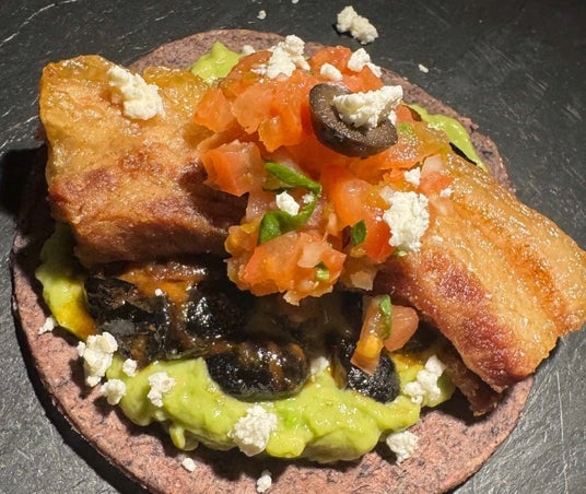 柔らかく質の良い豚バラ肉を、数種類のスパイスやハーブでトロトロになるまで煮込んで素揚げし、トマトやクミンと一緒に炊いた丹波の黒豆と、アボカドやトマトのサルサを添えたモダンなタコス。ルチャドールに憧れてメキシコに渡ったオーナーが作る、和食材とコラボレーションしたタコスの世界をお楽しみいただけます。