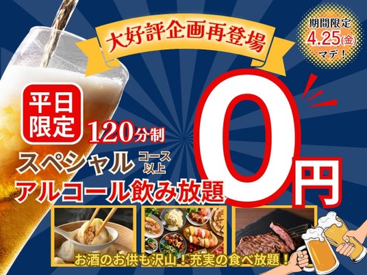 平日限定:アルコール飲み放題0円キャンペーンについて
