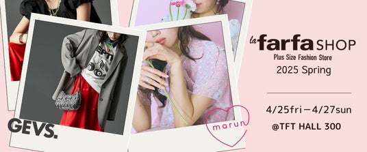 期間限定開催!注目のプラスサイズブランドが大集結するイベント「la farfa SHOP 2025spring」への出店が決定しました。4月25日から3日間、東京有明「TFTホール300」で開催。