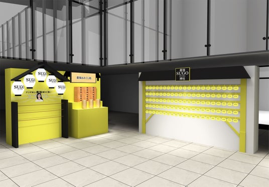 会場は「スゴスト」の特徴的なパッケージをイメージし、黄色を基調とした神社を再現しました。