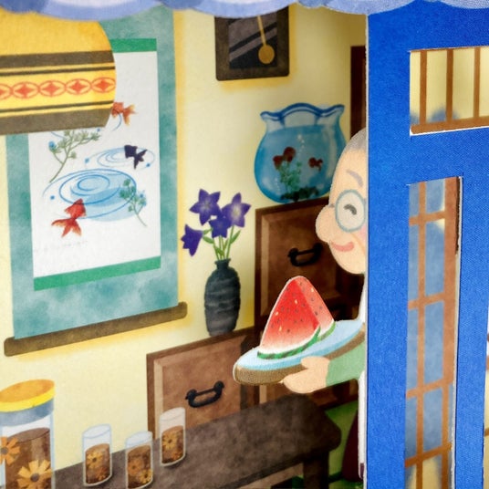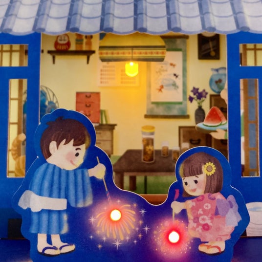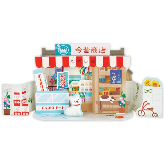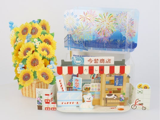 ジオラマ風に楽しめる「駄菓子屋」「妖怪屋敷」の風景型立体サマーカード