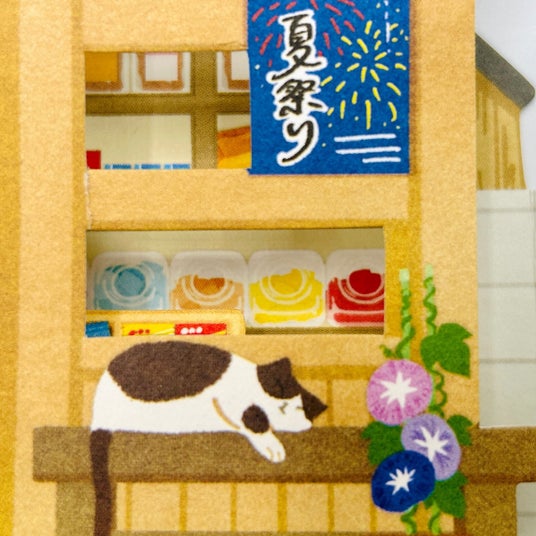 夏の情景をカードに閉じ込めた人気の風景型立体シリーズに、新柄の駄菓子屋と妖怪屋敷が登場。細かい部分までモチーフが描き込まれており、いろんな角度から見て楽しむことができます。