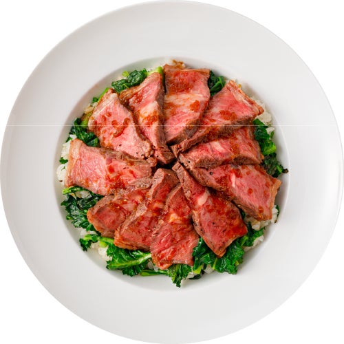 ローストビーフは湯煎でじっくり低温加熱することで、作りたてのような味わいに仕上がります。のらぼう菜をふんだんに使用したバターライスとの相性は抜群です。