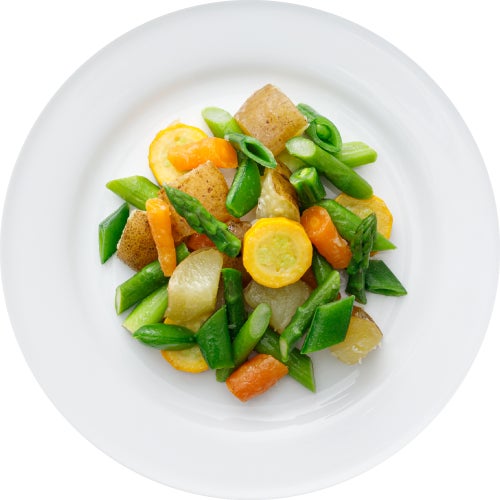 アスパラガス・スナップえんどう・じゃがいも・黄色ズッキーニ・ミニ人参をバターと一緒に茹でました。春を感じる素材の味と食感、野菜の彩りをお楽しみください。