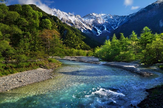 上高地バスターミナルから美しい梓川沿いにほぼ平坦な道が約10キロ続きます。徒歩1時間ごとに明神、徳沢、横尾と休憩ポイントが現れる歩きやすい道です。この散策エリアを楽しむための詳細な案内、食べ歩きガイドなど、上高地の一日をめいっぱい楽しむための情報が詰まっています。