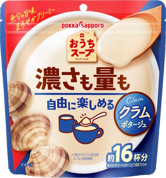 商品特長:定番のクラム*スープがたっぷり約16杯分楽しめる大容量タイプです。チャック付き袋入りで、好きな量・濃さでアレンジも楽しめます。魚介の旨味とクリーミーな味わいを楽しめます。紙箱や個包装をなくした環境にやさしい簡易包装。