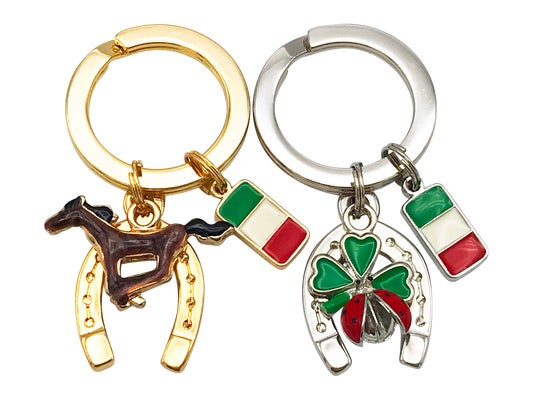 イタリア国旗がアクセントの馬蹄キーリングです。