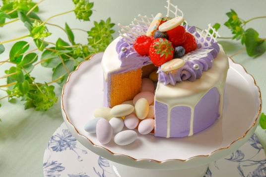 ケーキは、春に花を咲かせるスミレをイメージしたクリームと、イースターのシンボルである“イースターエッグ”をデコレーションした可愛らしい装いに。さらにカットすると中からもイースターエッグを表現したパステルカラーのドラジェが溢れ出るサプライズな演出で、春を祝福するパーティーシーンをより一層盛り上げます。