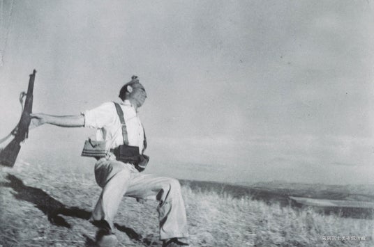 崩れ落ちる共和国側の兵士、コルドバ前線、スペイン、1936年