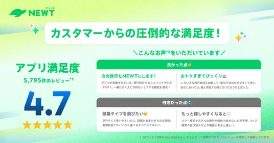 株式会社令和トラベル(本社:東京都渋谷区、代表取締役:篠塚 孝哉)が運営する、かしこい、おトク、旅行アプリ『NEWT(ニュート)』は、2025年4月5日にサービス開始3周年を迎えました。