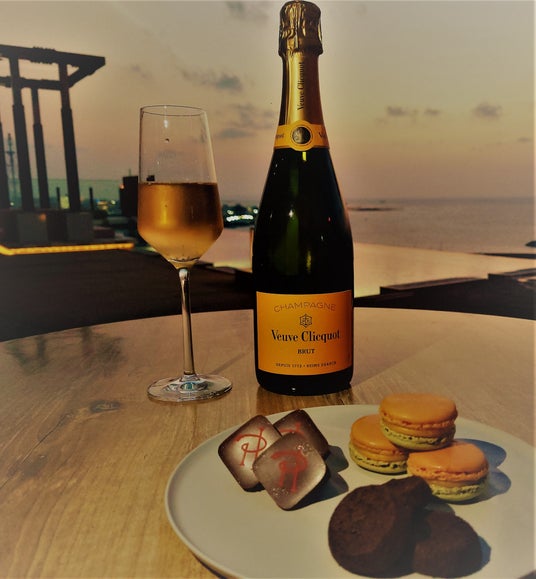 期間限定で特別なスイーツとシャンパーニュをご用意いたします。ピエール・エルメ・パリのマカロン、ボンボンショコラ、チョコレートサブレなどの定番スイーツとブーブ・クリコのシャンパーニュで、満ち足りた時間をお寛ぎください。
