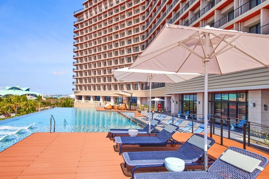 当ホテルは、2022年に沖縄県の中核地である宜野湾市の西海岸に開業、沖縄最大級のヨットハーバー「宜野湾港マリーナ」を目の前に望むロケーションです。全てのお部屋がテラス付きのオーシャンビューで、インフィニティプール、サウナ、岩盤浴などを備えバケーションにもビジネスにも、充実した快適なご滞在をお届けしております。