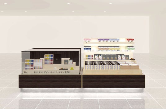 新デザインでは、おこしの起源があると言われている「弥生時代」に着想を得て、同時代の倉に始まったとされている、日本の伝統的工法「校倉造り」をイメージしたデザインを什器側面に取り入れました。新しくなったお店にお越しいただき、おこしの持つ豊かな日本の歴史と伝統を感じて頂ければ幸いです。