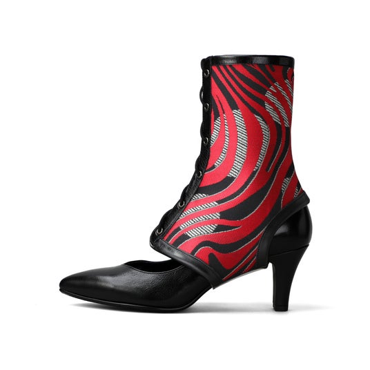 青山瑠愛さんはNEOKIMONOのメインアイテムであるオビデブーツ粋の新柄も担当