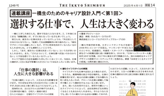 株式会社コンコードエグゼクティブグループ(本社:東京都千代田区)の代表・渡辺秀和が、一橋大学の学内団体である一橋新聞部(東京都国立市)が発行する「一橋新聞(いっきょうしんぶん)」1249号(2025年4月2日)にて、連載講座「一橋生のためのキャリア設計入門」をスタートしました。