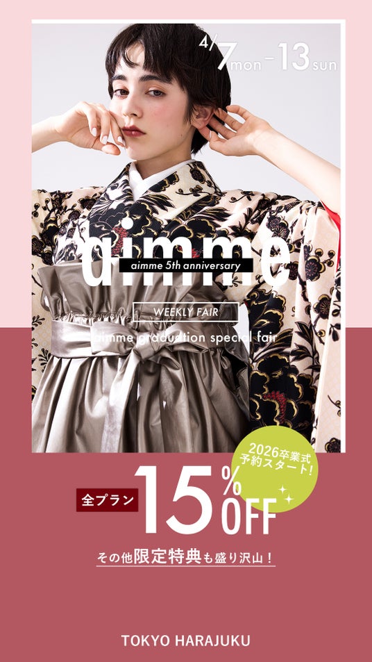 2026年、2027年ご成人のお嬢様、2026年ご卒業式を迎えられるお嬢様必見!aimme東京原宿店1週間限定! ウィークリーフェアを開催いたします!