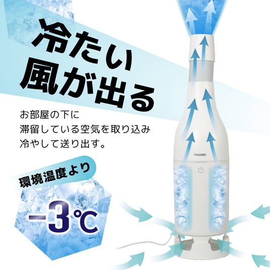 エアコンのような冷風を独り占め。保冷ボトルが冷やした空気を送り出す