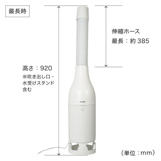 本体サイズは幅175×奥行175×高さ694(mm)で、吹き出し口は伸縮させることができます。