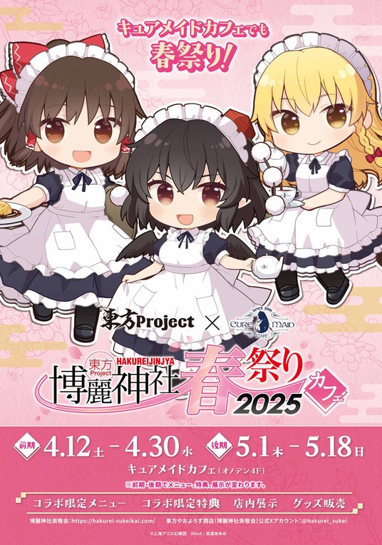 4/12(土)~!《東方Project×キュアメイドカフェ 博麗神社~春祭り2025カフェ》開催!前期コラボメニューや特典情報を公開!【タブリエ・マーケティング株式会社】