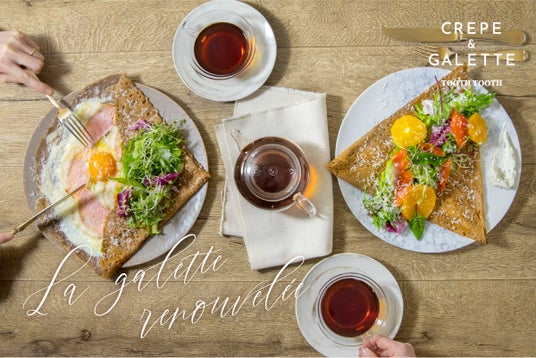 CREPE & GALETTE TOOTH TOOTHでは、フランス発祥のお食事クレープ “ガレット” と、季節のフルーツなどを使った “クレープ” をより一層皆様にお愉しみいただけるよう、上質でバラエティ豊かなラインアップをご用意しております。