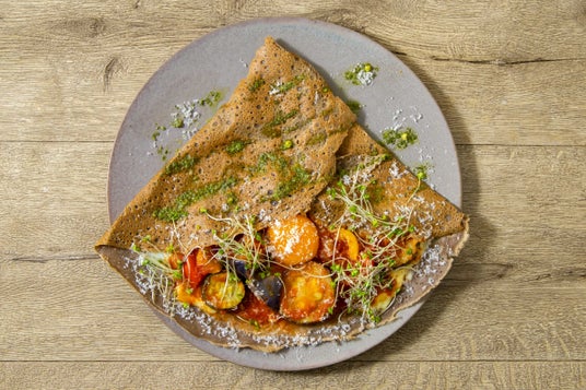 厳選した香り高いそば粉と、兵庫・赤穂の塩、フランス産のシードル、卵を使用したシェフこだわりの生地を使用。高温の鉄板で一枚一枚丁寧に焼き上げるガレットは、表面はパリッと、そば粉の香りが引き立つ味わいが特徴です。