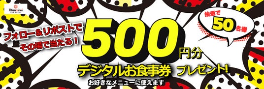 宮本むなしでご利用いただける 500円分のデジタルお食事券を抽選で 50 名様にプレゼント。