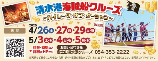 鈴与グループの各種旅船サービスを提供する富士山清水港クルーズ株式会社(本社:静岡県静岡市、代表取締役社長:大井 一郎)では、今年のゴールデンウイークも、清水港にて「海賊船クルーズ」を開催します。