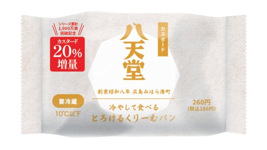 株式会社八天堂(本社:広島県三原市、代表取締役:森光孝雅)は、ファミリーマート限定で販売する「冷やして食べる とろけるくりーむパン カスタード」のカスタードクリームを20%増量し、2025年4月8日(火)より数量限定で全国のファミリーマート(約16,300店)にて発売いたします。