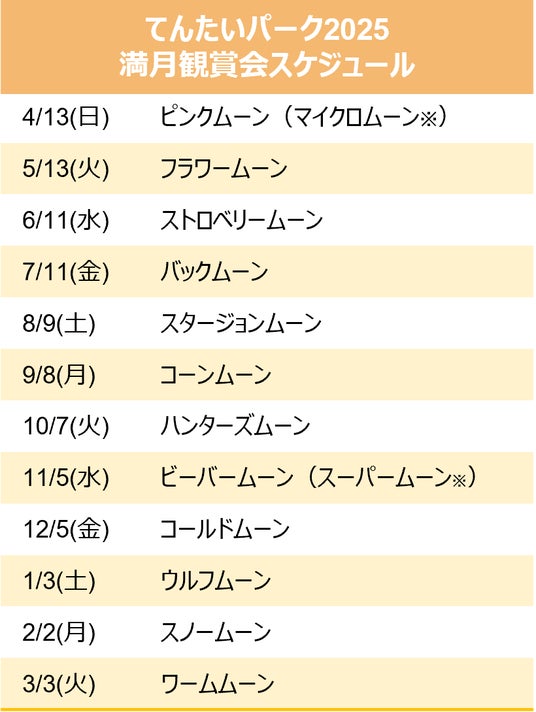 2025年度は、毎月満月の日に美しく輝く月を愛でる「満月観賞会」をはじめ、10月の「中秋の名月」、11月と1月には「ダイヤモンド富士」、「初日の出」など、様々な天体イベントの観賞会を予定しています。
