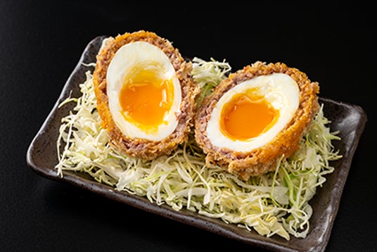 とろとろの半熟状態で仕上げた自慢の1品。とんかつ+もう1品でお召し上がりください。(税込700円)
