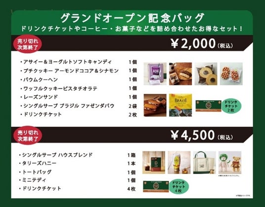 タリーズコーヒー 「グランドオープン記念バッグ2種」
