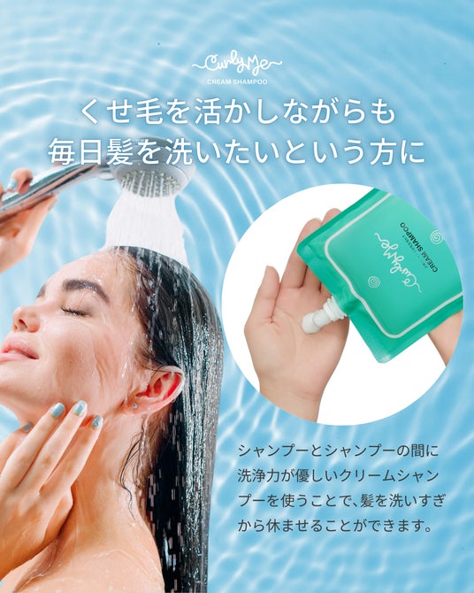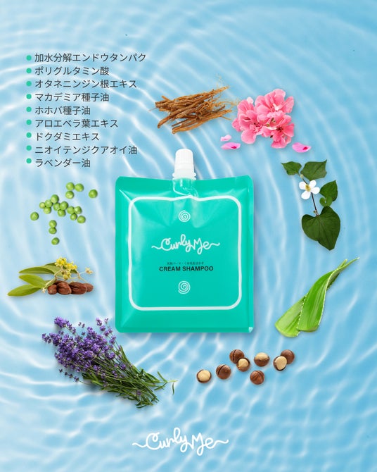 「Curly Me クリームシャンプー」は、泡立たない新感覚のクリームシャンプーとして、昨年11月の販売からくせ毛や天然パーマの方々にご好評をいただいています。植物由来成分を豊富に配合し、髪と頭皮に優しく、自然なカールを美しく引き出します。