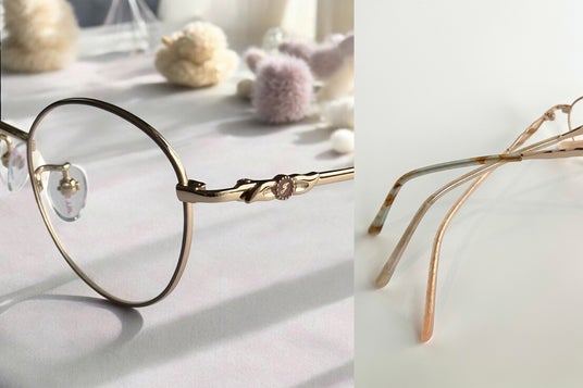 JILL STUARTらしい柔らかさと透明感のあるカラーリングにすることにより、大人の‟軽やかさ“を印象付ける仕上がりとなっています。また、腕部分にはシンプルながらも存在感のある、繊細なディテールやメタルのゴールドアクセントが施されています。上品で優雅なマーブル模様のアセテート材を使用することで、横顔にさりげないアクセントを添え、洗練された美しさを引き出しています。