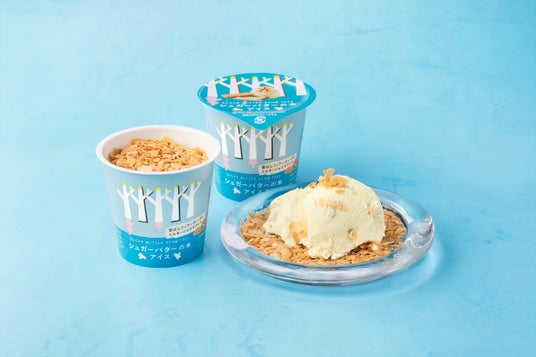 ひ~んやりミルキーな新食感!2種のサクサク生地が香ばしい『シュガーバターの木』らしさ全開のカップアイス