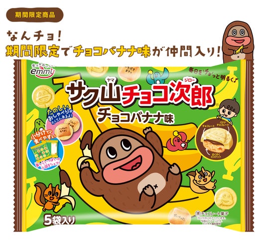 大好評につき今年も発売決定!毎日をチョっと明るくするチョコビスケット『サク山チョコ次郎』から「チョコバナナ味」が4月14日(月)に期間限定で発売!
