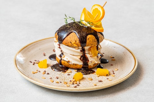さらさらとほどけるようなくちどけ、豆乳であることを忘れるようなミルキーな風味と甘酒ならではの優しい甘さが特徴の自家製ソフトクリームを、カカオニブ・紅茶(ダージリン)パウダー・フレッシュオレンジと共に、小麦粉不使用のまるごと豆粉パン「ZENBブレッド紅茶&オレンジ」でサンド。トップにはビターで濃厚なチョコレートソースをたっぷりとかけました。紅茶とオレンジが香るゼンブブレッドに、フレッシュなオレンジと紅茶パウダーを合わせていっそう華やかに。甘酸っぱさとチョコレートの豊かな余韻が広がる、満足度が高いのにヘルシーなデザートです。