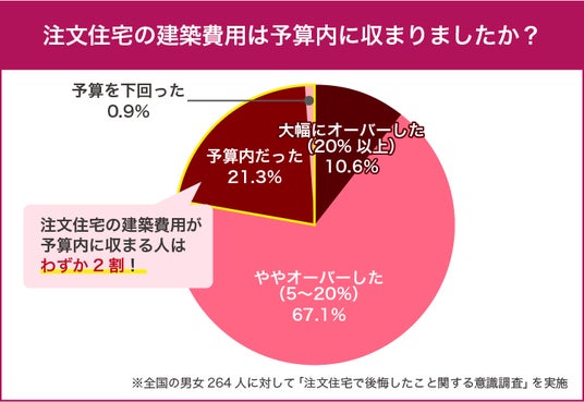 【注文住宅】建築費用が予算内に収まるケースはわずか2割!264人に聞いた“注文住宅で不満だったこと”