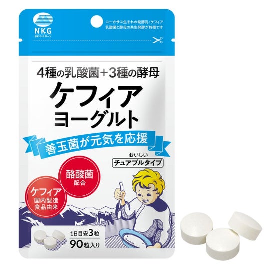 本商品は、乳酸菌と酵母の共生発酵乳「ケフィア」を、発酵時間をかけずに手軽においしく摂れるチュアブルタイプのサプリメントです。