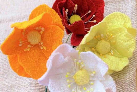ちりめんを使って、かわいいポピーの花を作ります。お土産にもおすすめ!
