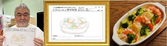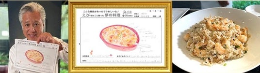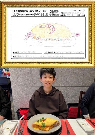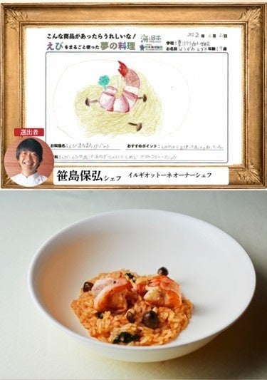 「えび丸ごと夢の料理コンテスト」は、企画自体がとても楽しいものですが、今回は茂出木シェフに息子の作品を選んでいただき、料理として再現していただくという貴重な機会をいただきました。