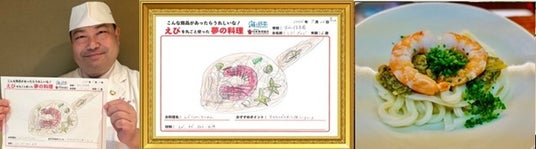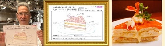 「えび丸ごと夢の料理コンテスト」は、ただ夢のエビ料理を描く絵画コンテストではありません。「シェフ部門」受賞作品は、テレビでも紹介される日本の料理界を代表する一流レストランのシェフたちが実際に再現し、夢の料理をカタチにします。